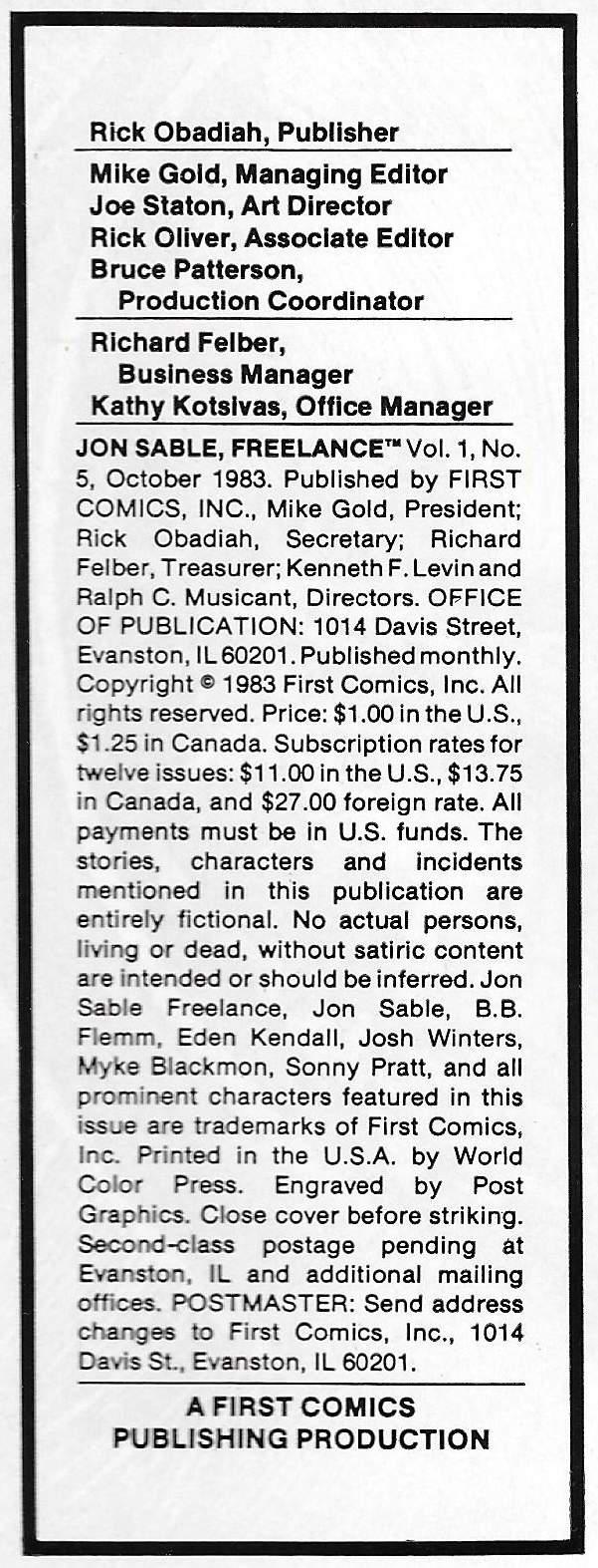 Indicia Publisher: First Comics Inc.