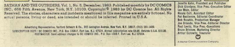 Indicia Publisher: DC Comics Inc.