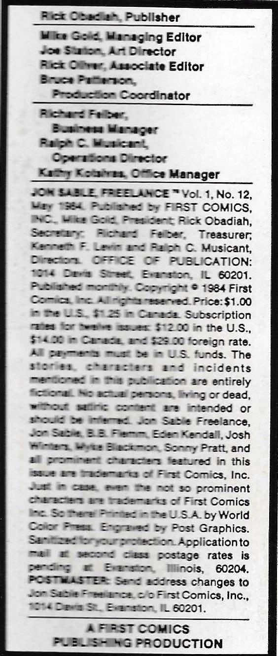 Indicia Publisher: First Comics Inc.