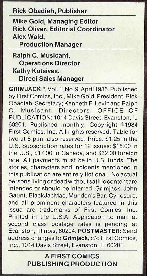 Indicia Publisher: First Comics Inc.