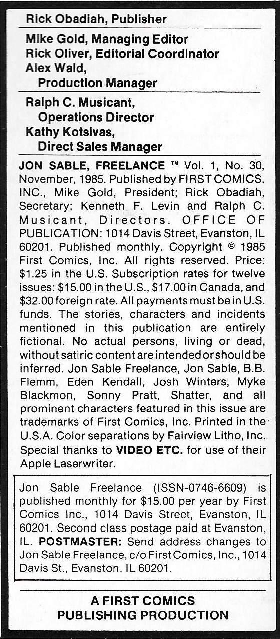Indicia Publisher: First Comics Inc.