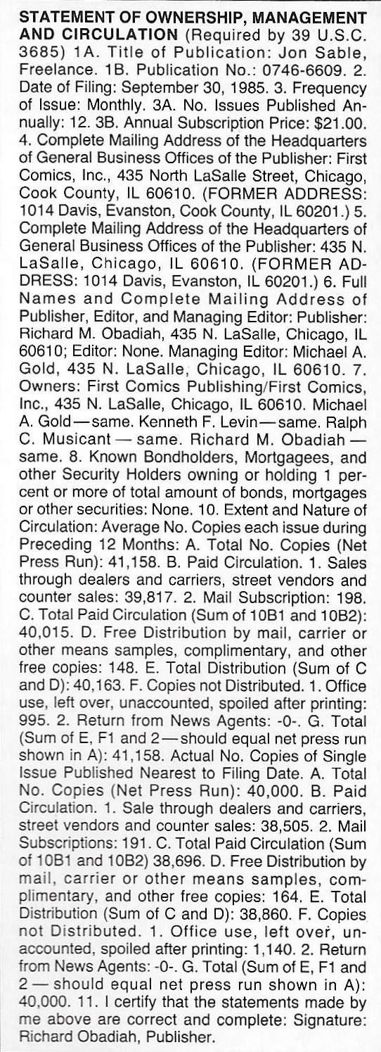 Disclose Notes: This issue doesn't list who actually edited it. Additionally the Statement of Ownership lists the editor of the book as "None". On-sale date from Amazing Heroes #84.
