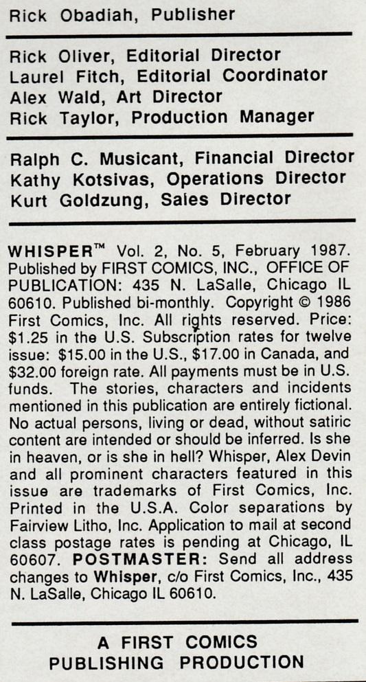 Indicia Publisher: First Comics Inc.