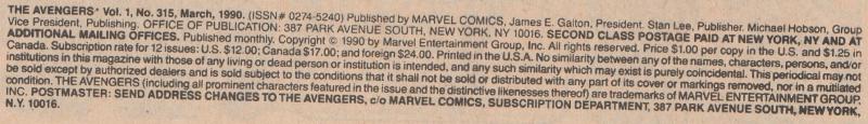 Issue: The Avengers #315
