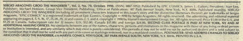 Indicia Publisher: Epic Comics