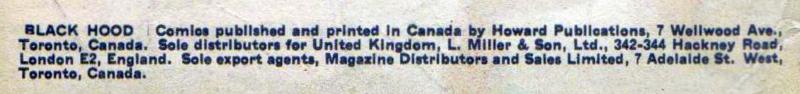 Indicia for issue states "Comics published and printed in Canada by Howard Publications, 7 Wellwood Ave., Toronto, Canada."