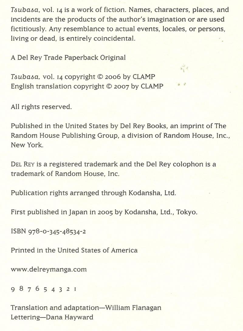 Disclose Notes: CLAMP is the name of an all-female studio of Japanese writers and artists. At the time of publication the 4 members of CLAMP were Ageha Ohkawa, Mokona, Satsuki Igarashi and Tsubaki Nekoi.