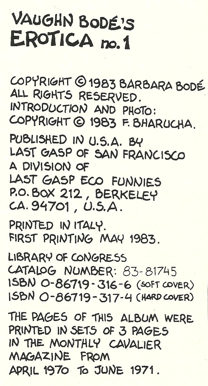 Disclose Notes: Pages of this album were originally printed in sets of 3 pages in the monthly Cavalier magazine from April 1970 to June 1971.