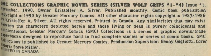 Disclose Notes: Title in indicia: GMC Collections Graphic Novel Series (Silver Wolf Grips #1-4)