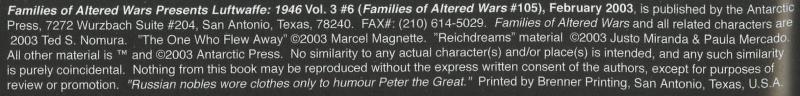 Issue: Families of Altered Wars Presents Luftwaffe: 1946 #105