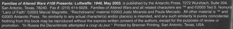 Issue: Families of Altered Wars Presents Luftwaffe: 1946 #108