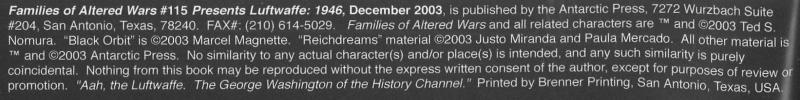 Issue: Families of Altered Wars Presents Luftwaffe: 1946 #115