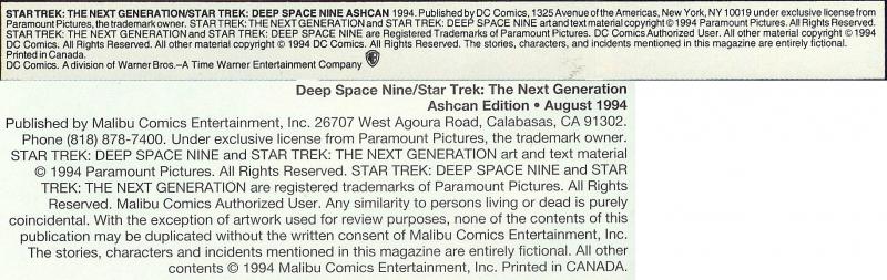Malibu side indicia "Deep Space Nine/Star Trek: The Next Generation Ashcan Edition".