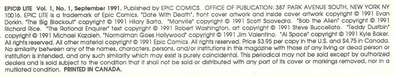 Indicia Publisher: Epic Comics