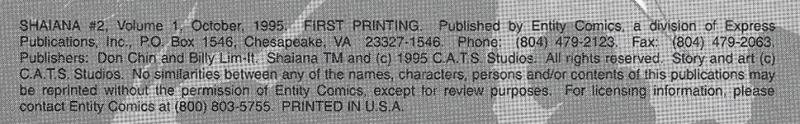 Editor(s): Peter Gaw (credited) (editor); Billy Lim-It (credited) (editor, publisher); Johnny Duen (credited) (marketing director); Entity Comics (credited) (produced); C.A.T.S. Studios C.A.T.S. Studios