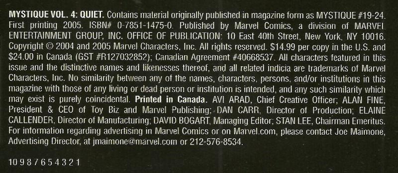Disclose Notes: Reprints Mystique (Marvel, 2003 series) #19-24.