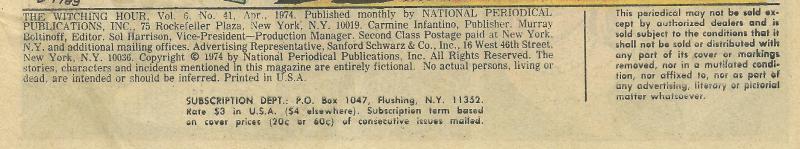 Indicia Frequency: Approved by the Comics Code Authority