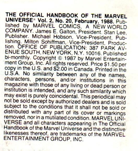 Comic is An Index of Deceased Marvel Characters Employing Text, Original Art, and Previously Published Clip Art; Joe Rubinstein is Listed as Inker and Phil Lord, Marc Siry, and Don Hudson as Art Enhancers So All Have Been Listed as Inkers for All Entries; All Volume numbers are from Silver Age and up; In his intro in Issue #16, Mark Gruenwald insists that all characters appearing in this book are truly dead, but as time and plotlines proved, a number of them proved to be only mostly dead
