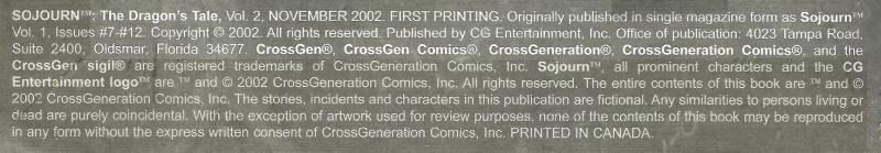 Disclose Notes: Reprints: Sojourn (CrossGen, 2001 series) #7-12.