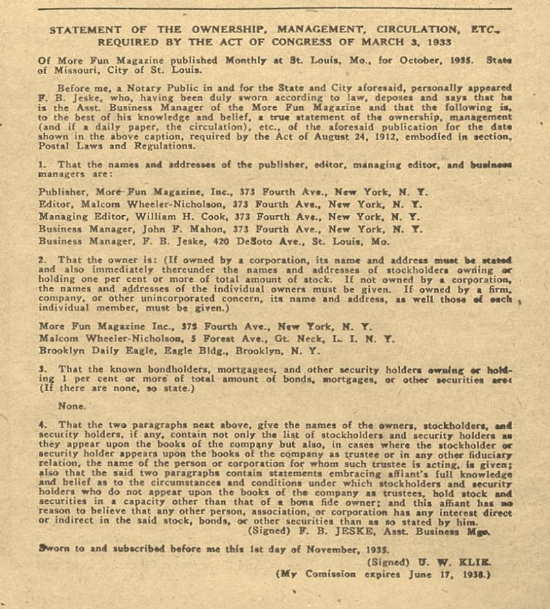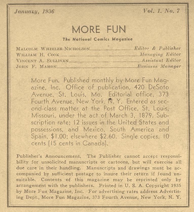 Indicia Publisher: More Fun Magazine Inc.