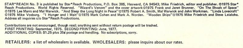Story titles and creators with illustration and indicia information. Sequence content from 2nd print. 1st print had editorial/introductory text by Mike Friedrich?