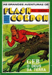 Compilação das tiras dominicais originais (King Feature Syndicate, Inc.) de Flash Gordon, S142 - Geb, the Earth God (15/05/1977 a 28/08/1977). Das tiras originais faltam várias vinhetas.