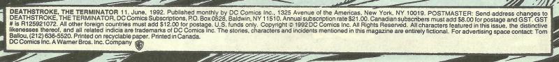 Comic has no interior credits. Credits taken from the cover and part one of the story in Deathstroke #10.