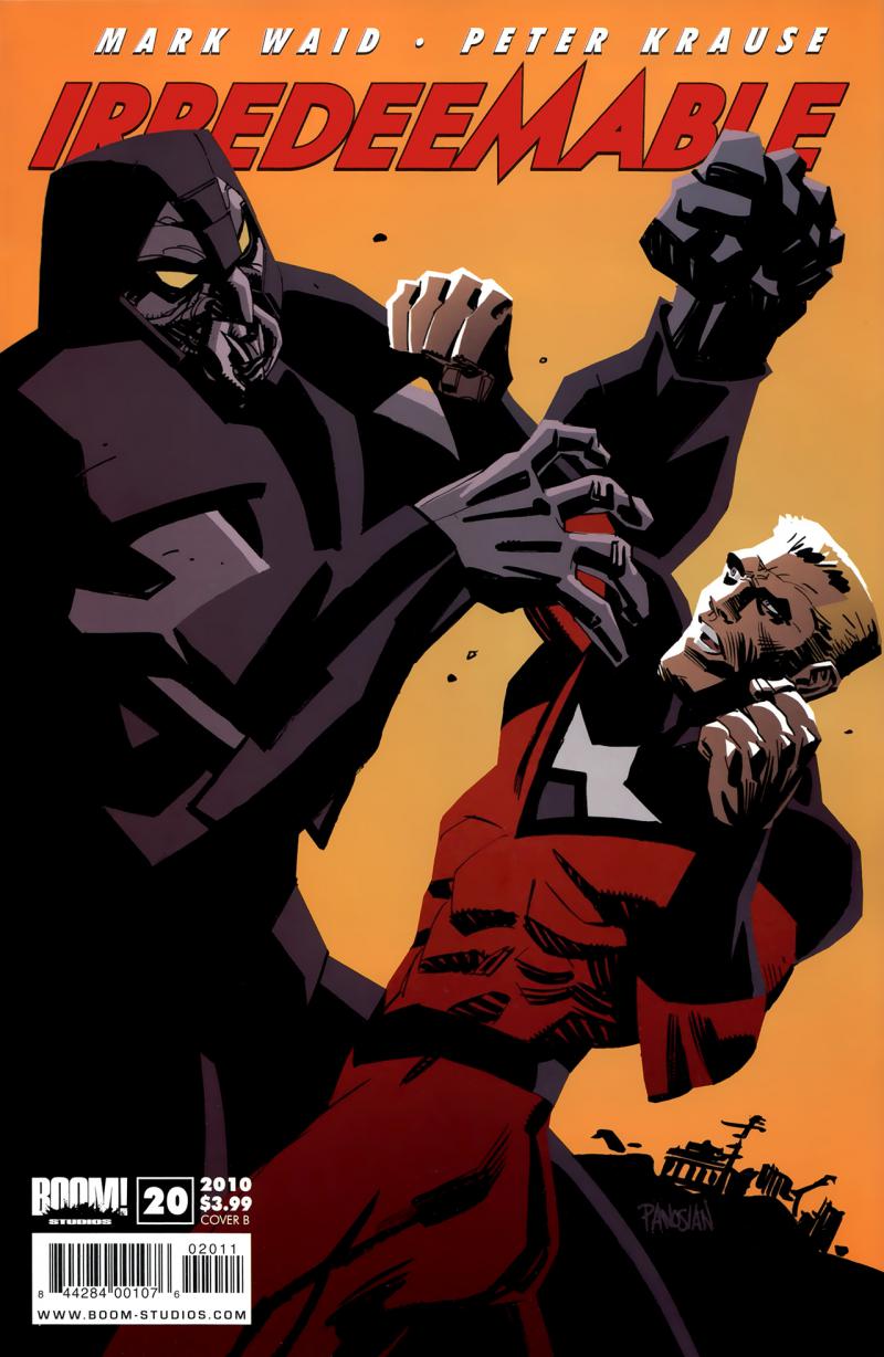 The inside front cover presents logo, credits, Plutonian's insignia, recap of story so far, and indicia in a design that first appeared on the inside front cover of Irredeemable Special #1.
