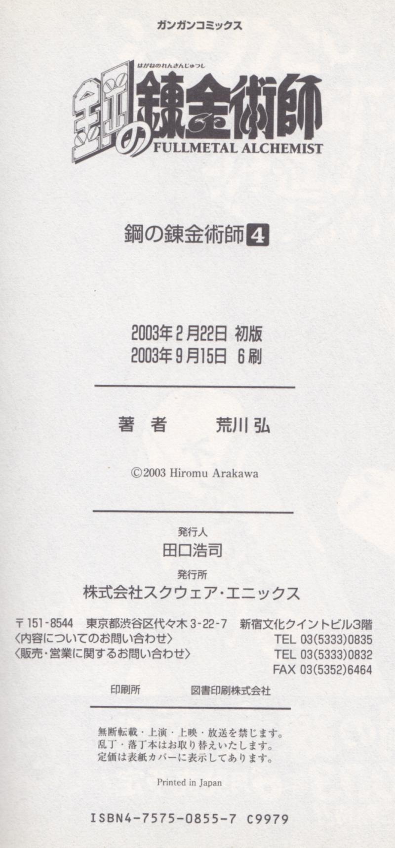 Issue: 鋼の錬金術師 [Hagane no Renkinjutsushi] [Fullmetal Alchemist] #4