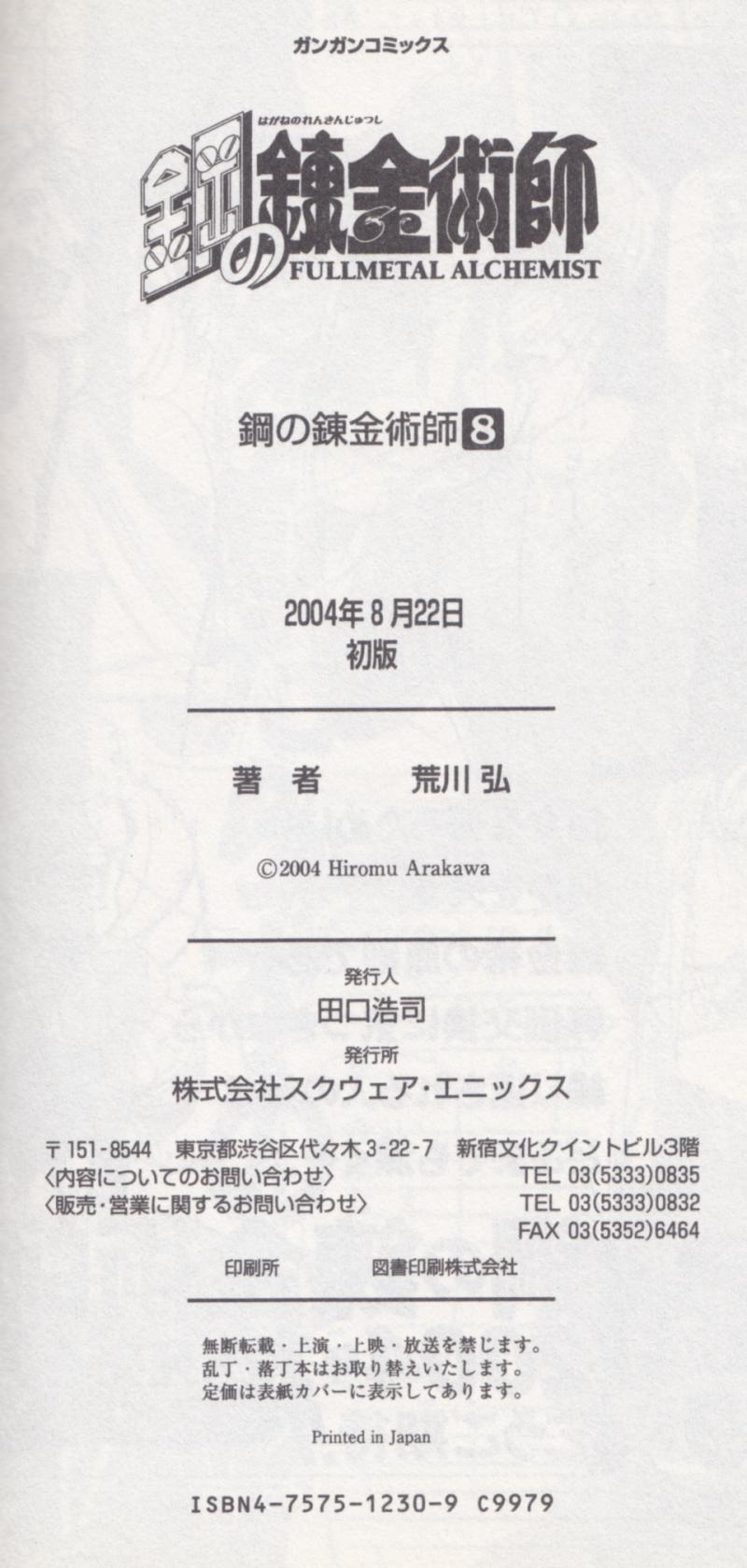 Issue: 鋼の錬金術師 [Hagane no Renkinjutsushi] [Fullmetal Alchemist] #8