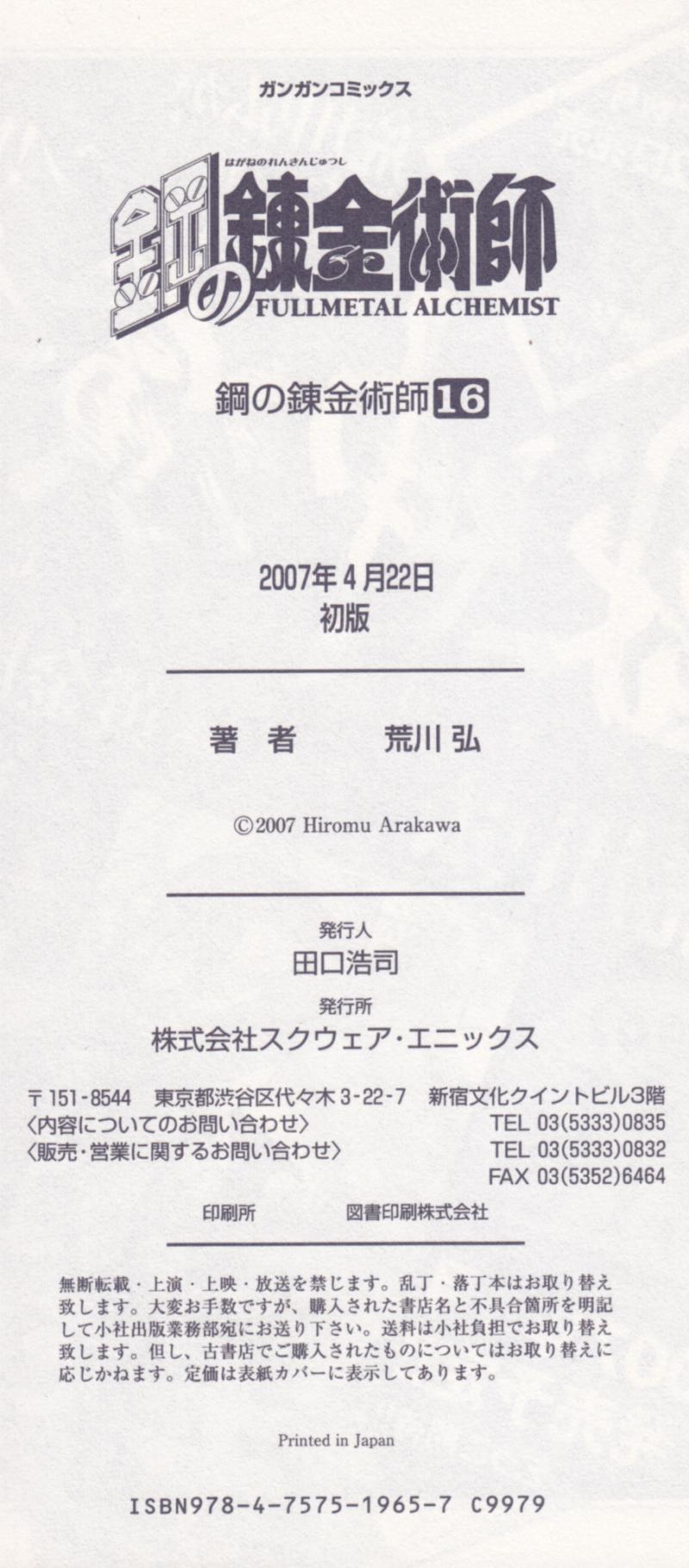 Issue: 鋼の錬金術師 [Hagane no Renkinjutsushi] [Fullmetal Alchemist] #16