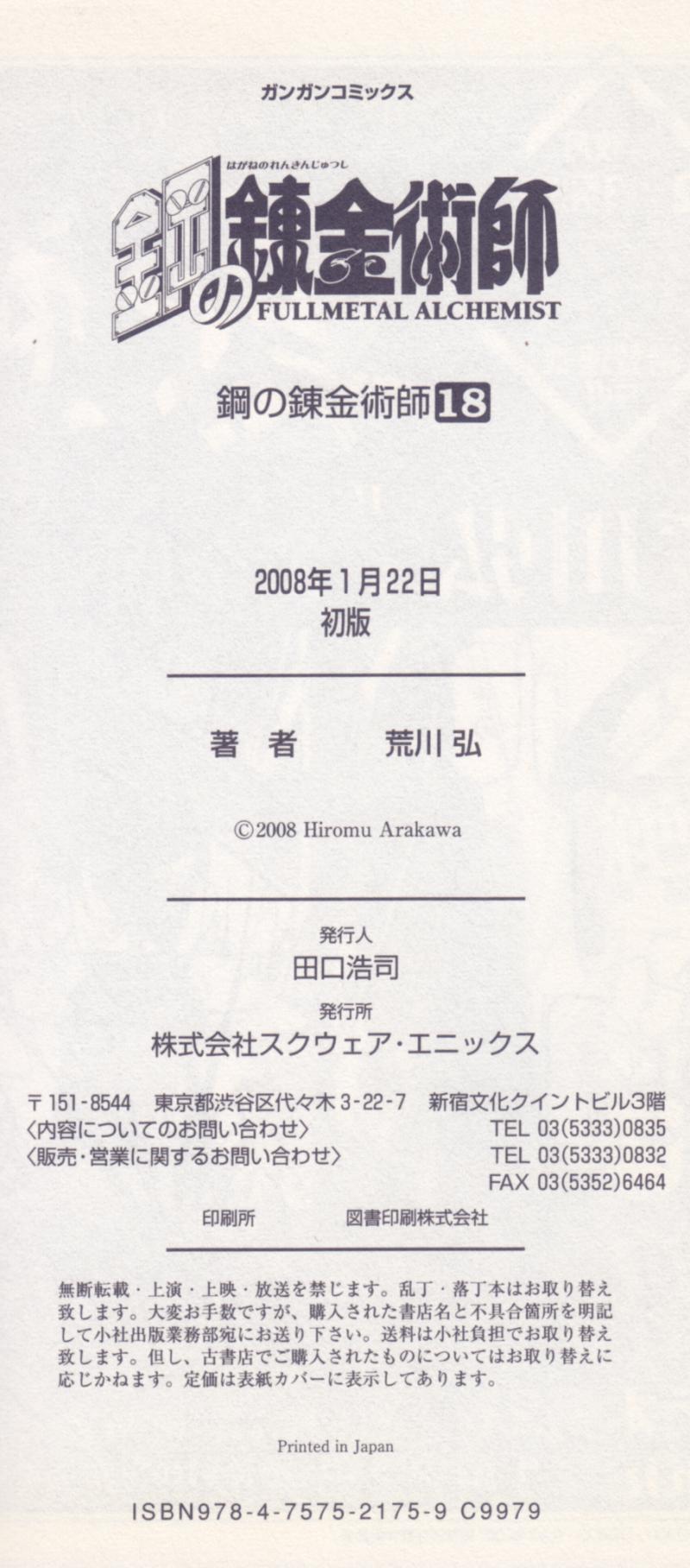 Issue: 鋼の錬金術師 [Hagane no Renkinjutsushi] [Fullmetal Alchemist] #18