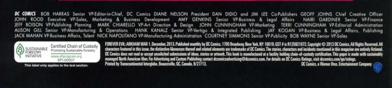 Commissioner James Gordon; Detective Pierce; Mr. Haskell (death); Warden Agatha Zorbatos; Bane (villain); Emperor Blackgate [Ignatius Ogilvy] (villain); Clayface [Basil Karlo] (villain); Hypnotic (villain); Killer Croc [Waylon Jones] (villain); Man-Bat [Kirk Langstrom] (villain); Mr. Combustible (villain); Mr. Freeze [Victor Fries] (villain); Penguin [Oswald Cobblepot] (villain); Professor Pyg [Lazlo Valentin] (villain); Reaper [Benjamin Gruener] (villain); Ragdoll (villain); Scarecrow [Jonathan Crane] (villain); Talons (villains); Tweedle Dee [Deever Tweed] (villain); Tweedle Dum [Dumpson Tweed] (villain); White Rabbit [Jaina Hudson] (villain)