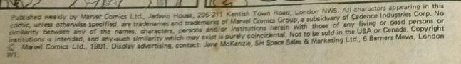 Indicia Publisher: Marvel Comics Ltd.