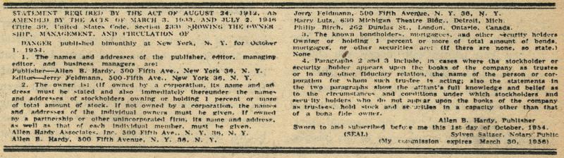 Statement of ownership for the Comic Media issues, presumably prepared before Charlton acquired the material. Lists Allen B. Hardy as Publisher and Jerry Feldmann as Editor.