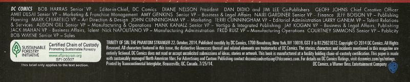Phantom Stranger [also as Philip Stark]; Allie Stark; Buddy (a dog); Dr. Terrance Thirteen; Elena Stark; God [also as The Presence]; Mercy [Bal; Daiyu]; Pandora; Spectre [Jim Corrigan]; The Question; Tim Stark; Zauriel