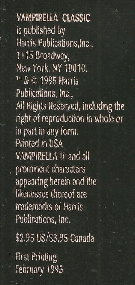 Centerfold pinup, recolourized reprint of a pencilled frontispiece drawing from an issue of Vampirella (Warren, 1969 series), no colourist credits given.