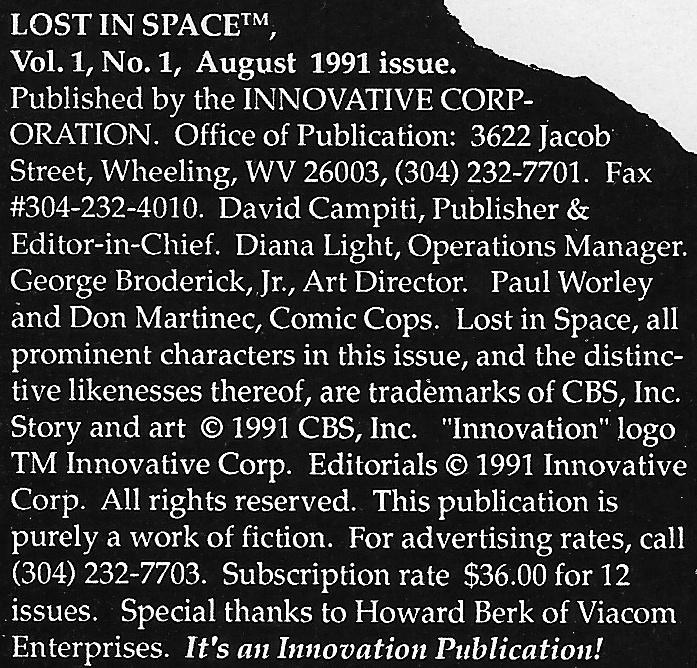 Welcome to Innovation's Lost In Space. -- the first time that John, Maureen, Will, Penny, and Judy Robinson, and Zachary Smith, have made it onto the comics page.