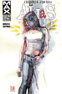 Promo for Jessica Jones: The Pulse - The Complete Collection (Marvel, 2015 series), whose cover uses the artwork from the cover of The Pulse (Marvel, 2004 series) #14.