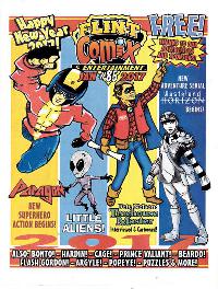 Lots of talking animals, fictional characters in odd situations, history gone wrong, bad puns, and an arrest of a character from "Love Is" strip.
