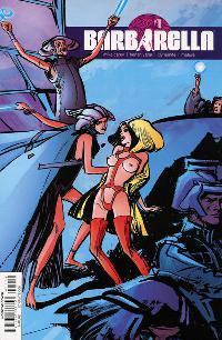 Babarella drops into the Parosian system and is captured and sentenced for 'bio-smuggling'. She meets Jury, a spy, and they escape from prison only to be shot down.