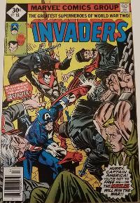 Invaders [Captain America [Steve Rogers]; Human Torch [Jim Hammond]; Namor, the Sub-Mariner; Bucky [James Buchanan Barnes]; Toro [Thomas Raymond]; Spitfire [Jacqueline Falsworth]]; Dyna-Mite [Roger Aubrey]; Lord James Montgomery Falsworth [Union Jack]; The Mighty Destroyer [Brian Falsworth] (introduction); Master Man [Willie Lohmer]; Warrior Woman [Frieda Ratsel]; Nazis