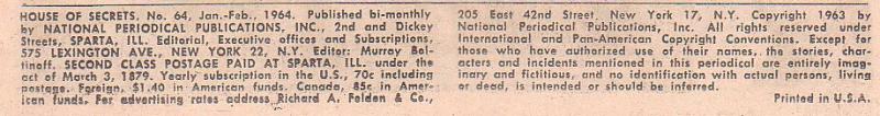 Disclose Notes: On-sale date from ad in Rip Hunter... Time Master #18 and copyright registration.