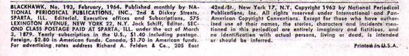 Disclose Notes: On sale date from Blackhawk (DC, 1957 series) #192 (January 1964) and this issue's copyright registration.