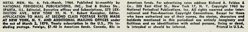 Metal Men [Gold; Iron; Lead; Mercury; Platinum; Tin]; Dr. William Magnus; Gas Gang [Helium; Oxygen; Carbon Dioxide; Carbon Monoxide; Chloroform] (first appearance, origin); comet being