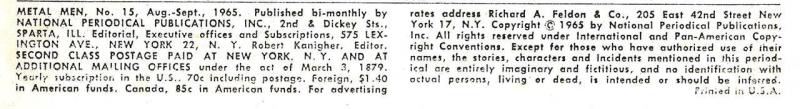 Credits for script and pencils confirmed from Julius Schwartz's editorial records, provided by DC Comics. Schwartz kept records for Robert Kanigher who edited this issue. The records show Andru as inker, but it is believed that Mike Esposito actually inked the story.