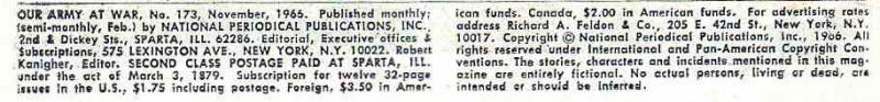 Credits for script, pencils and inks confirmed from Julius Schwartz's editorial records, provided by DC Comics. Schwartz kept editorial records for Robert Kanigher, who edited this issue.
