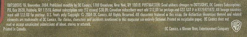 Outsiders [Arsenal [Roy Harper]; Nightwing [Dick Grayson]; Grace Choi; Jade [Jennie-Lynn Hayden]; Anissa Pierce [Thunder]; Indigo; Shift; Starfire]; Jefferson Pierce [Black Lightning]