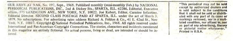 Credits for script, pencils and inks confirmed from Julius Schwartz's editorial records, provided by DC Comics. Schwartz kept editorial records for Robert Kanigher, who edited this series prior to Joe Kubert.