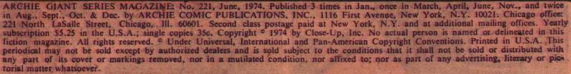 Owners: Archie Comic Publications, Inc. and Archie Enterprises, Inc., both at 1116 First Avenue, New York, N.Y. 10021
